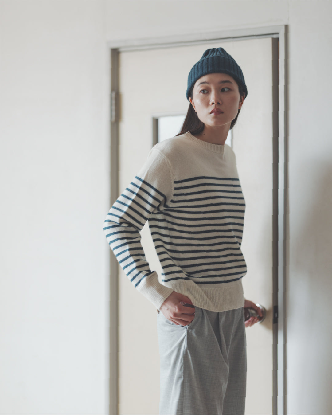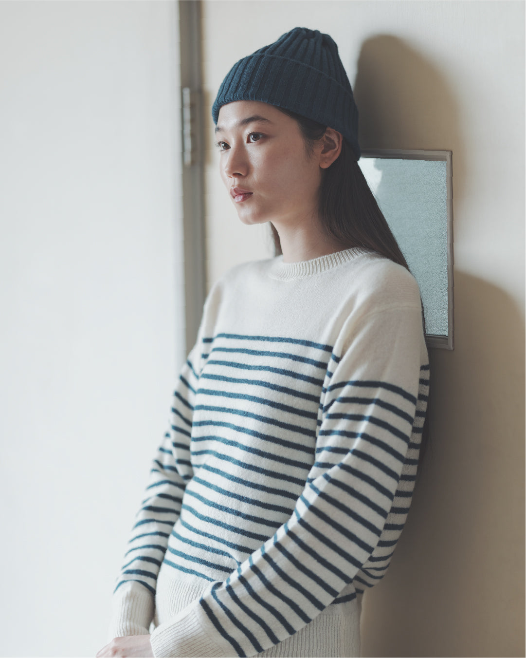 素材の良さがそのまま柄の美しさとなって現れる、“カシミヤだからこそ成立した”ボーダーニット。