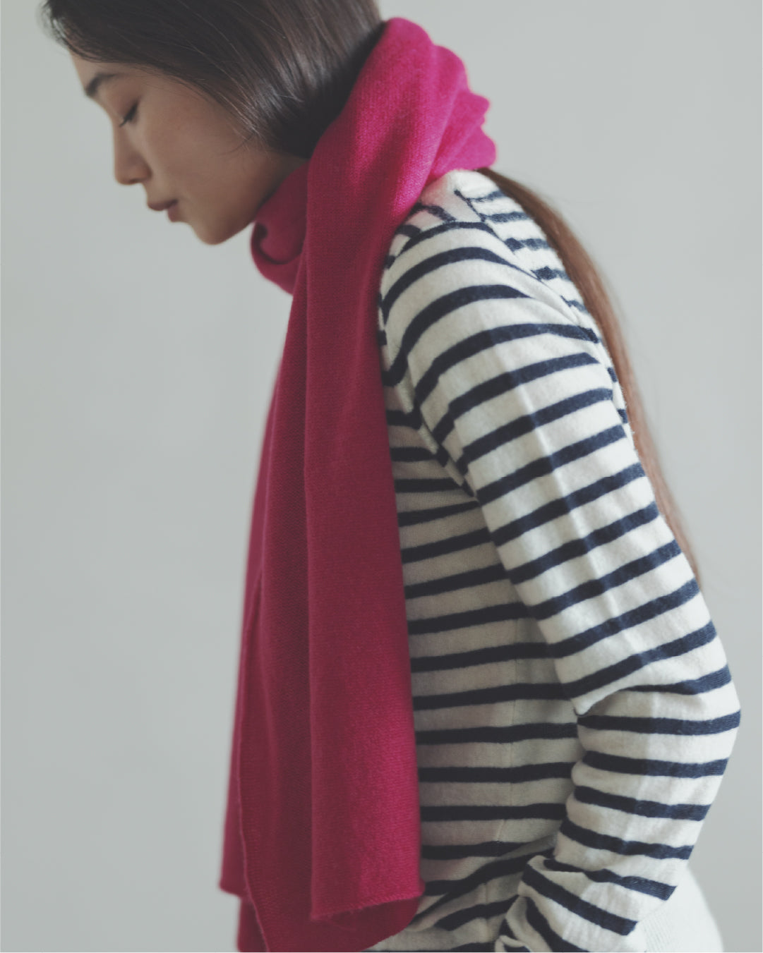 薄手のカシミヤは通気性に優れ、季節の変わり目にも心地よく寄り添います。